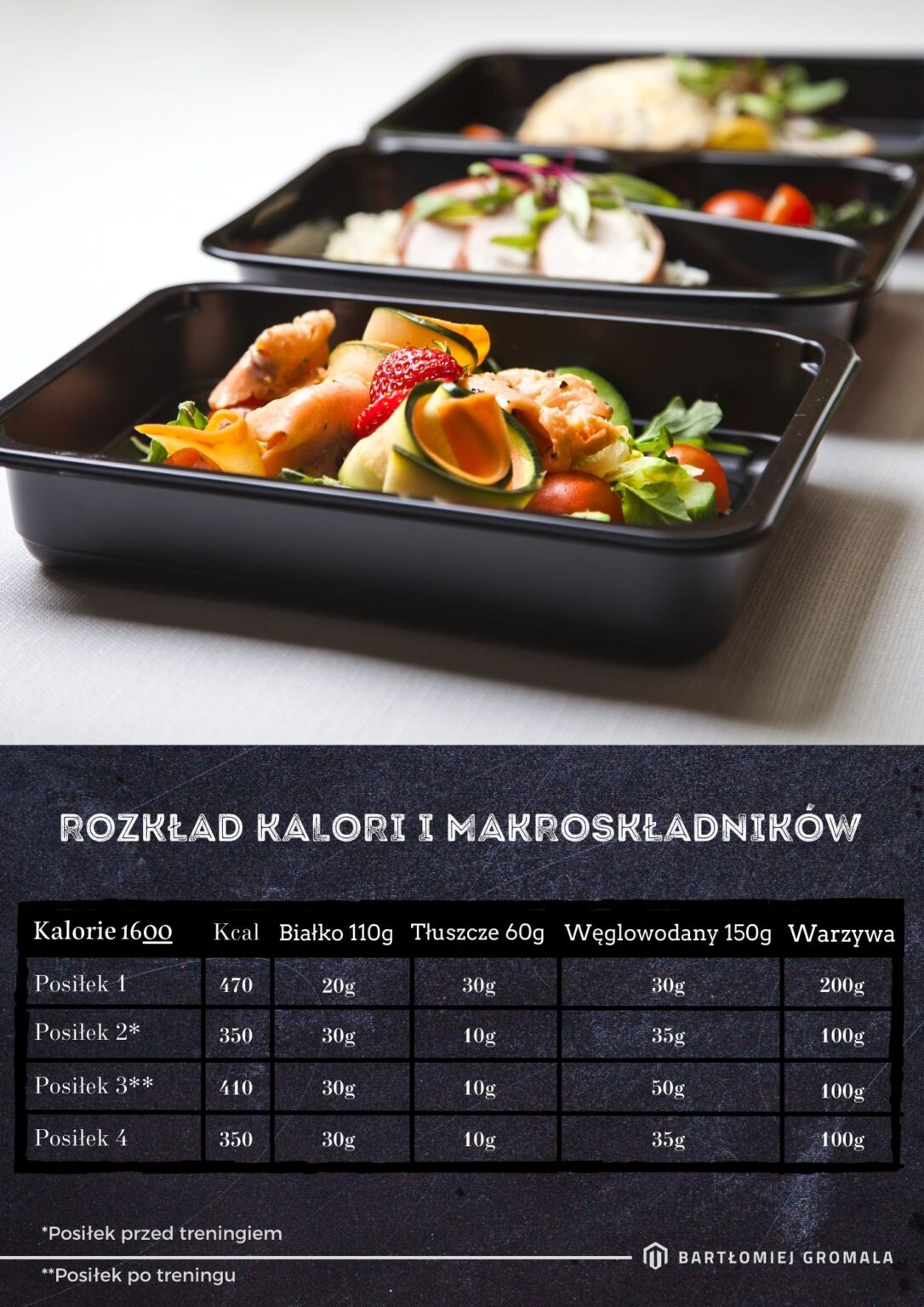 • dokładnie i czytelnie rozpisane makroskładniki każdego posiłku